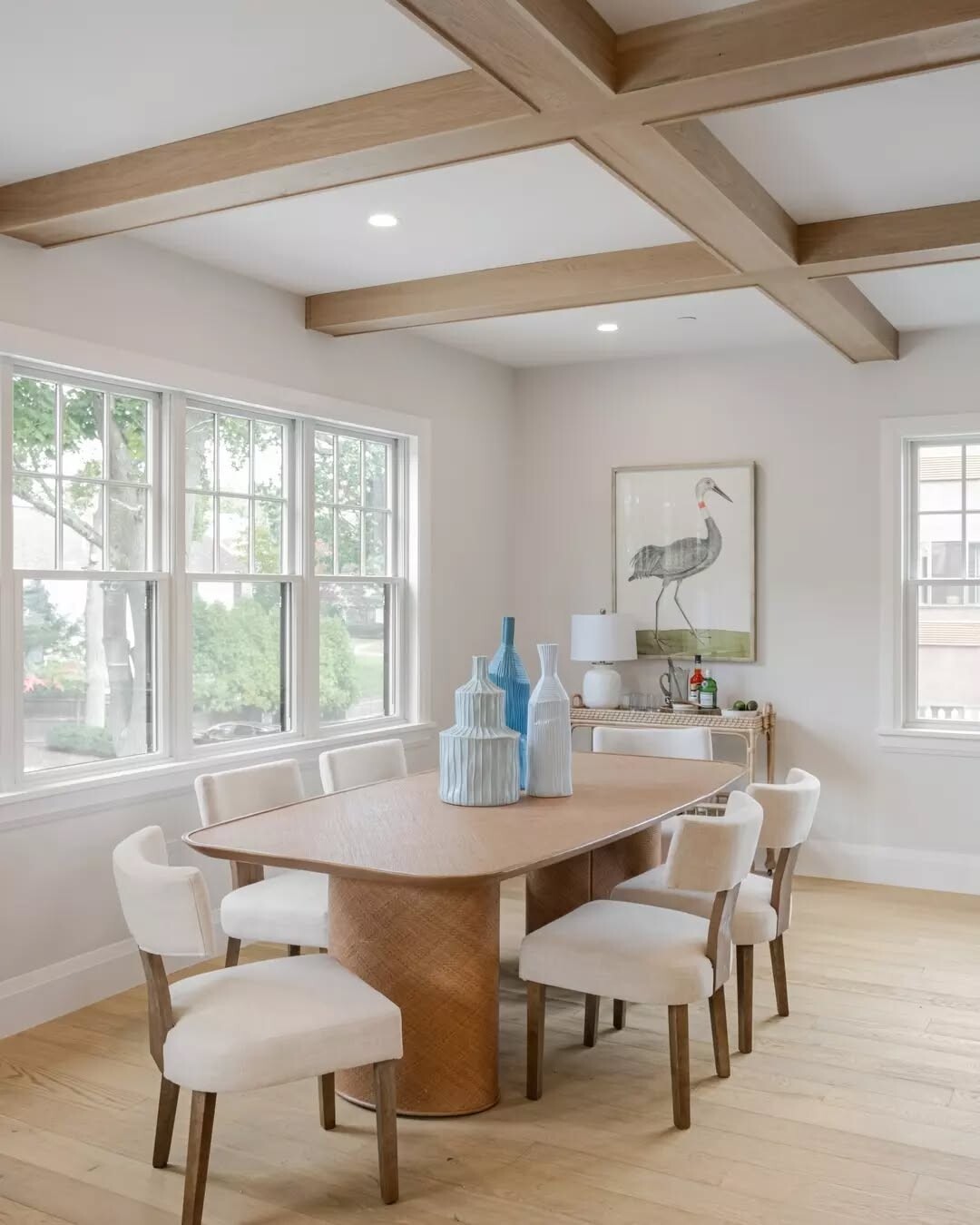 Modern dining areas reflect current design trends. Oval wooden tables are popular. They invite conversation and connection. Six upholstered chairs provide comfort. Soft fabrics add warmth. Large windows create bright spaces. Natural light lifts moods.